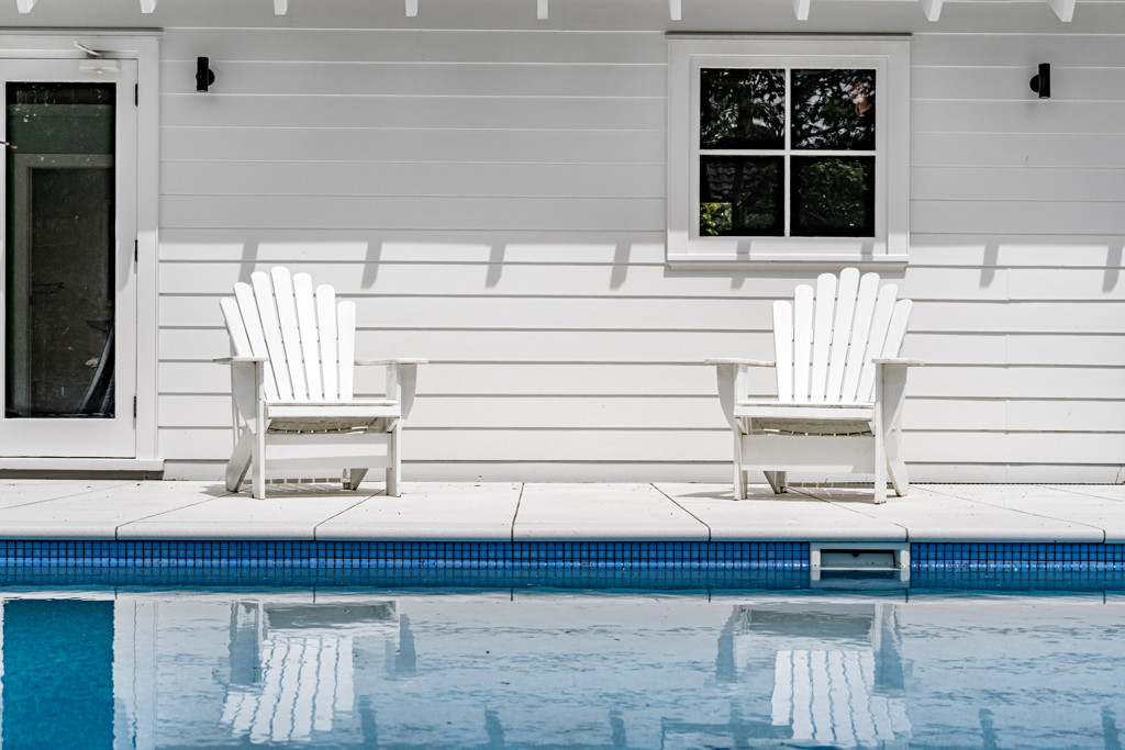 The outdoor spaces are an extension of the home's personality. Wide decks and paved courtyards wrap around the living areas, with the heated saltwater pool and outdoor fireplace providing a focal point for year-round entertaining. From long summer afternoons poolside to cosy evenings by the fire, the home invites every season to be celebrated.