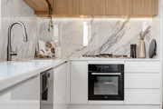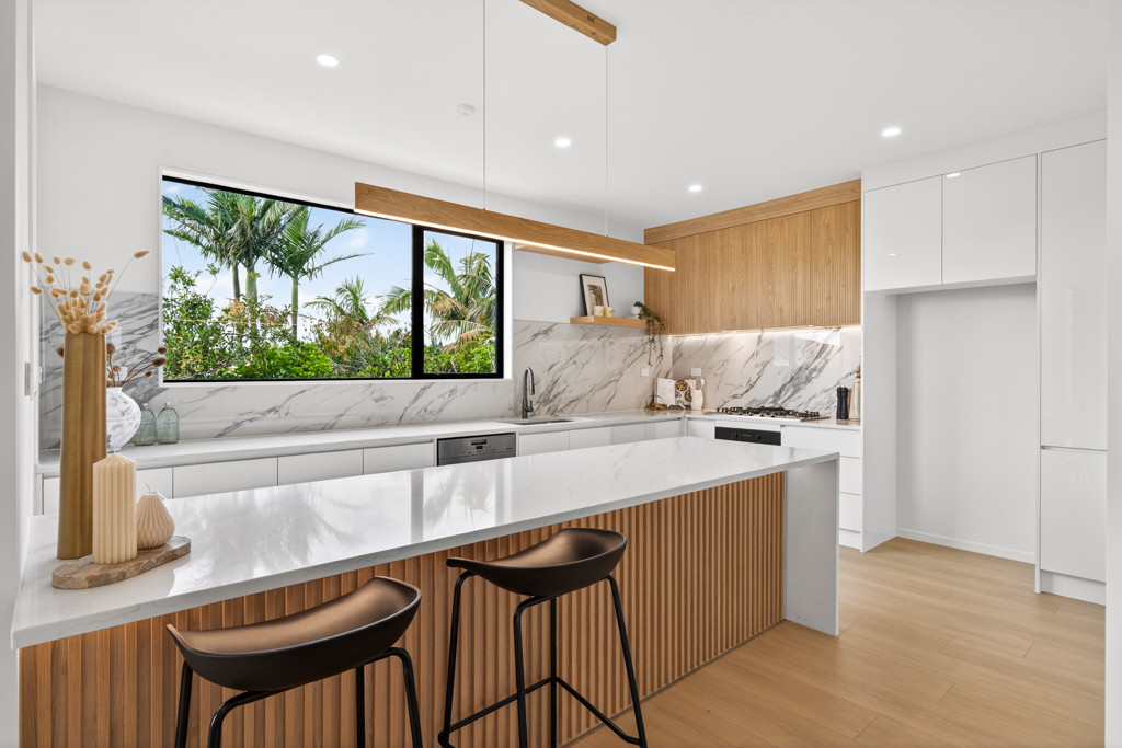 One of the standout residences in the development, this home offers a level of independence that's increasingly hard to find. With wraparound land and natural light pouring in from multiple angles, it immediately feels more open, more private, and more like a true home. Inside, the layout has been carefully considered, balancing generous living zones with everyday comfort. At the centre, the kitchen features a stone island and premium appliances, ready to handle everything from busy mornings to weekend entertaining.